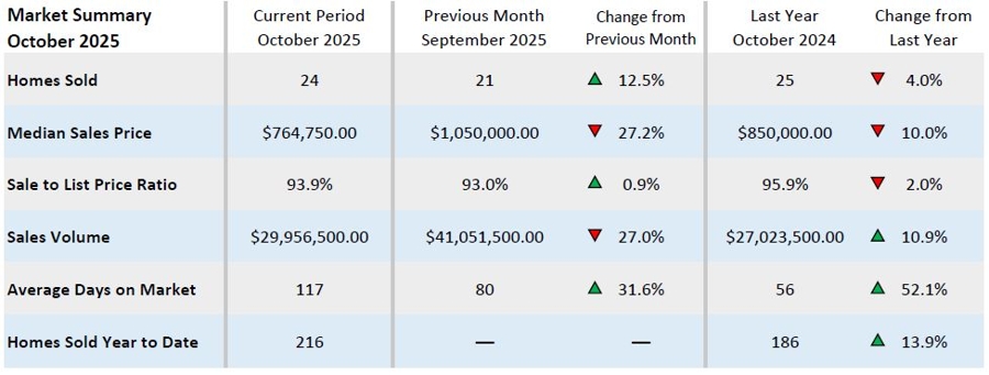 The following table compares sales in San Juan County from last month October 2025, the previous month September 2025, as well as October 2024.