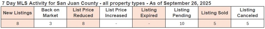 The following table compares sales in San Juan County from last month August 2025, the previous month July 2025, as well as August 2024.