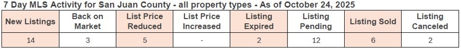 The following table compares sales in San Juan County from last month September 2025, the previous month August 2025, as well as September 2024.