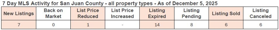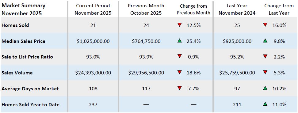 The following table compares sales in San Juan County from last month November 2025, the previous month October 2025, as well as November 2024.