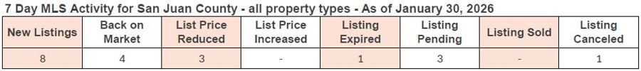The following table compares sales in San Juan County from last month December 2025, the previous month November 2025, as well as December 2024.