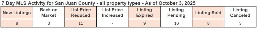 The following table compares sales in San Juan County from last month August 2025, the previous month July 2025, as well as August 2024.