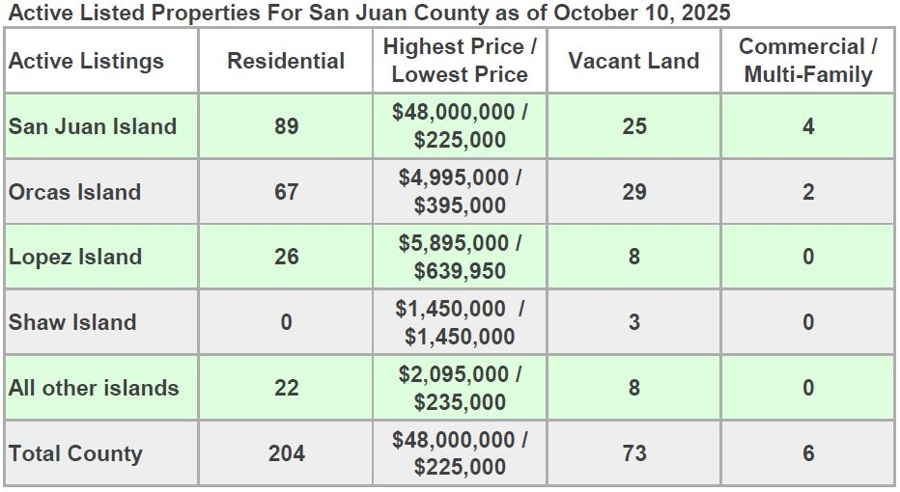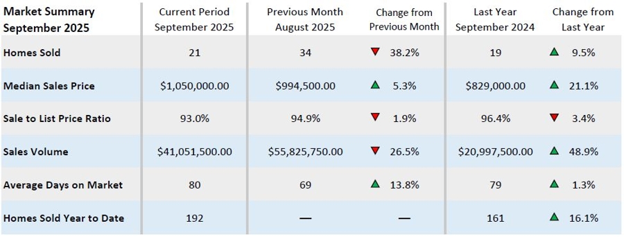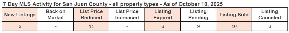 The following table compares sales in San Juan County from last month September 2025, the previous month August 2025, as well as September 2024.