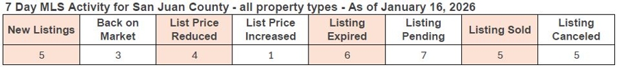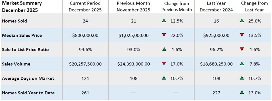 The following table compares sales in San Juan County from last month December 2025, the previous month November 2025, as well as December 2024.